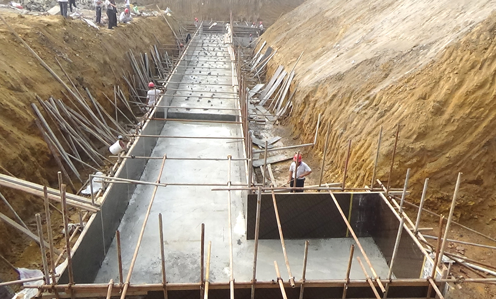 自2015年5月進場以來,累計完成挖運生活垃圾6800立方米;挖運建筑垃圾填筑路基或者大坑10萬立方米;機械挖土方35000立方米;澆筑C20混凝土50立方米;回填碎石304立方米;清表30萬平方米;修筑臨時便道約5000米;頂管46米。完成混凝土管安裝累計555米。設計橋梁工程和道路工程同期開展。其中,完成挖土方5000立方米,片石混凝土基礎約1250立方米。K1+480板橋完成0#橋臺擴大基礎、1#橋臺擴大基礎第一和第二步。K2+100拱橋完成0#橋臺第一步基礎。K4+015箱涵正在整平場地。K4+350拱橋正在開挖1#橋臺基坑。截至目前,累計完成造價合計約420萬元。