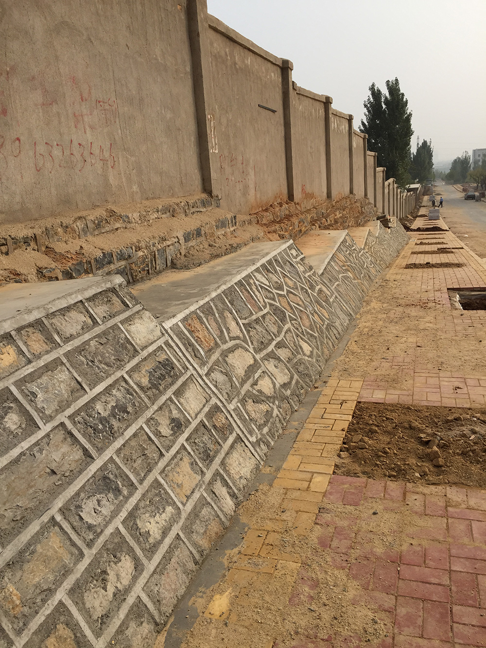 公寓樓東側擋墻施工完畢